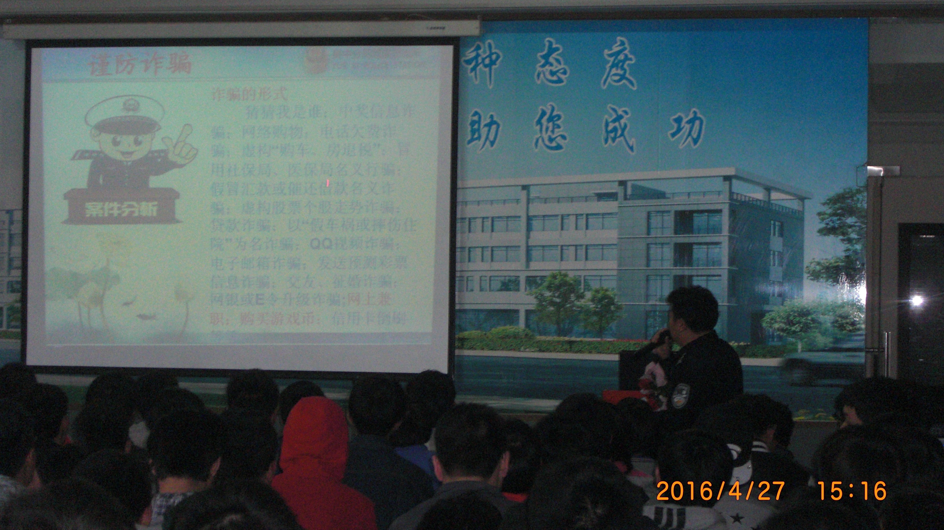 为切实提高我校师生的消防意识,更好掌握消防安全知识,增强自救互救的能力,4月27日下午,由越海校区学生会主办的“消防安全知识讲座”在校区二楼大厅举行,并特邀越溪派出所郑警官主讲。