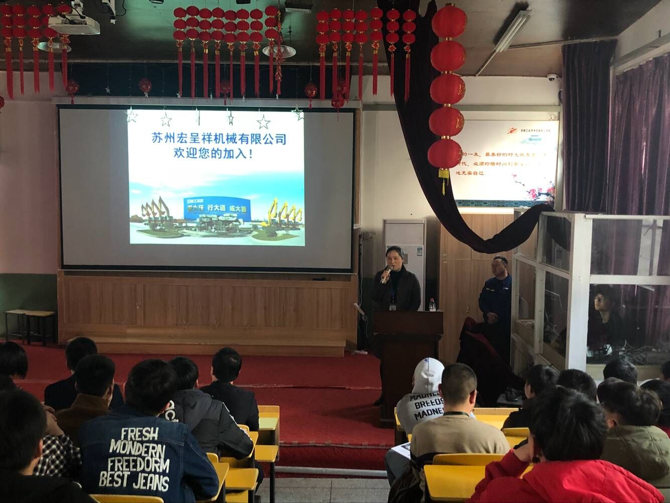 3月12——13日,连续五年作为徐工集团一等奖优秀代理商的苏州宏呈祥机械有限公司来我校举行校园专场宣讲会。会议由合作就业处陈彩燕处长主持,汽车维修专业、机械类专业的同学们参加了此次宣讲会。