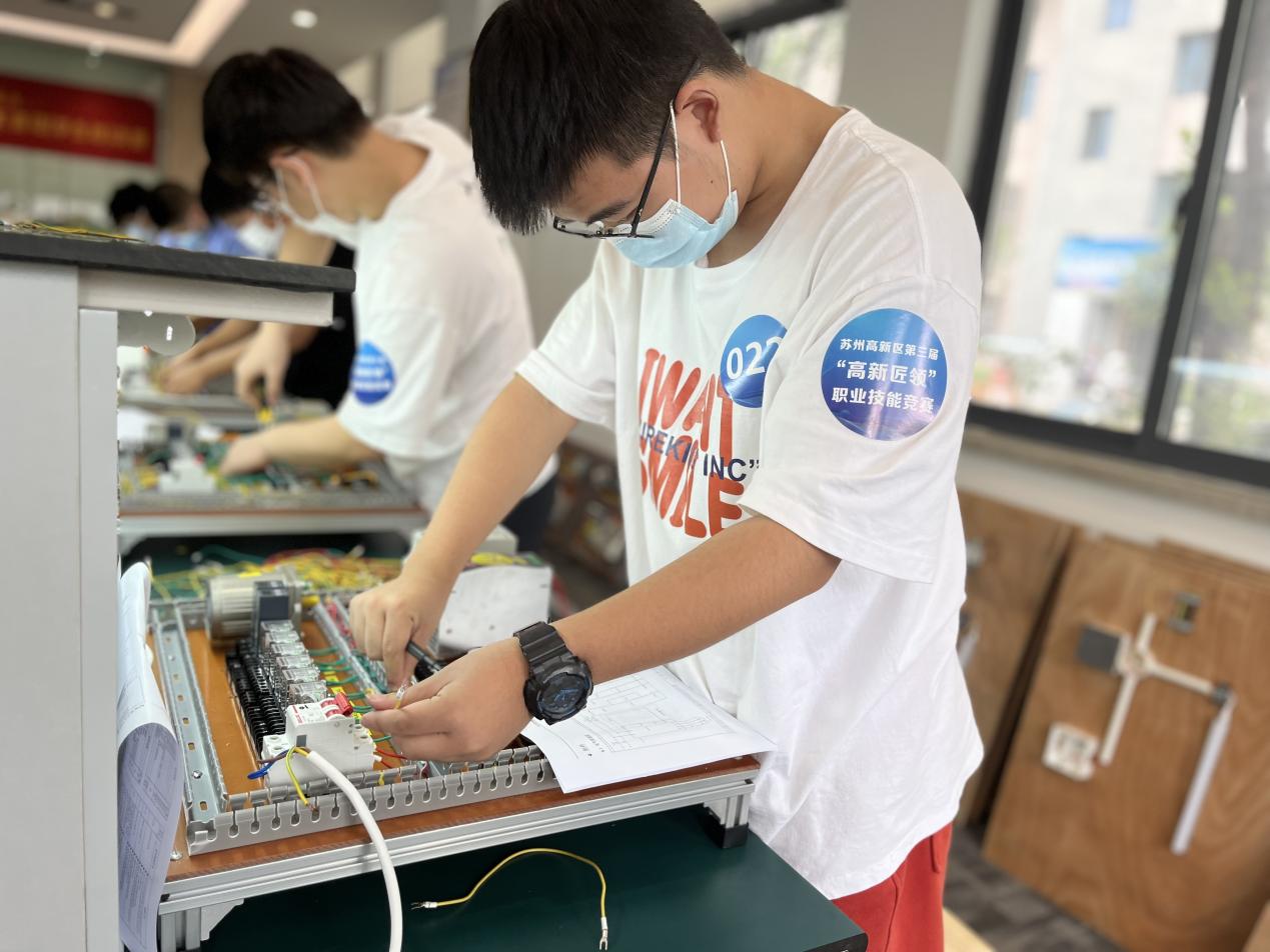 在刚刚结束的苏州市高新区第三届“高新匠领”职业技能大赛中,我校共有12名学生参加学生组电工项目比赛。12名学生均表现突出,成绩合格,获得电工项目高级职业资格证书。其中张文斌同学取得该项目第三名二等奖的优异成绩,并获现金奖励800元。