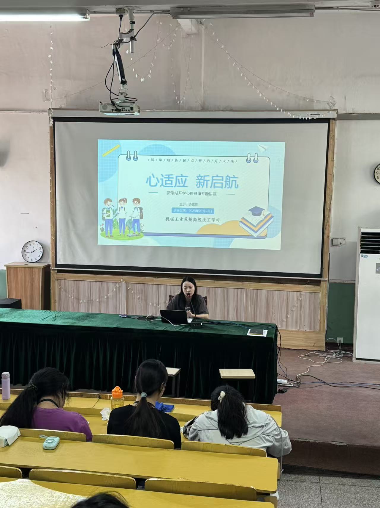 为进一步加强校园心理健康教育工作,帮助学生树立正确的心理健康观念,2025年9月22日下午,我校心理健康讲师俞菲菲老师为全体学生讲授了一堂“心适应,新启航”的心理健康教育讲座。全校师生现场聆听讲座,共同解锁心理健康密码。