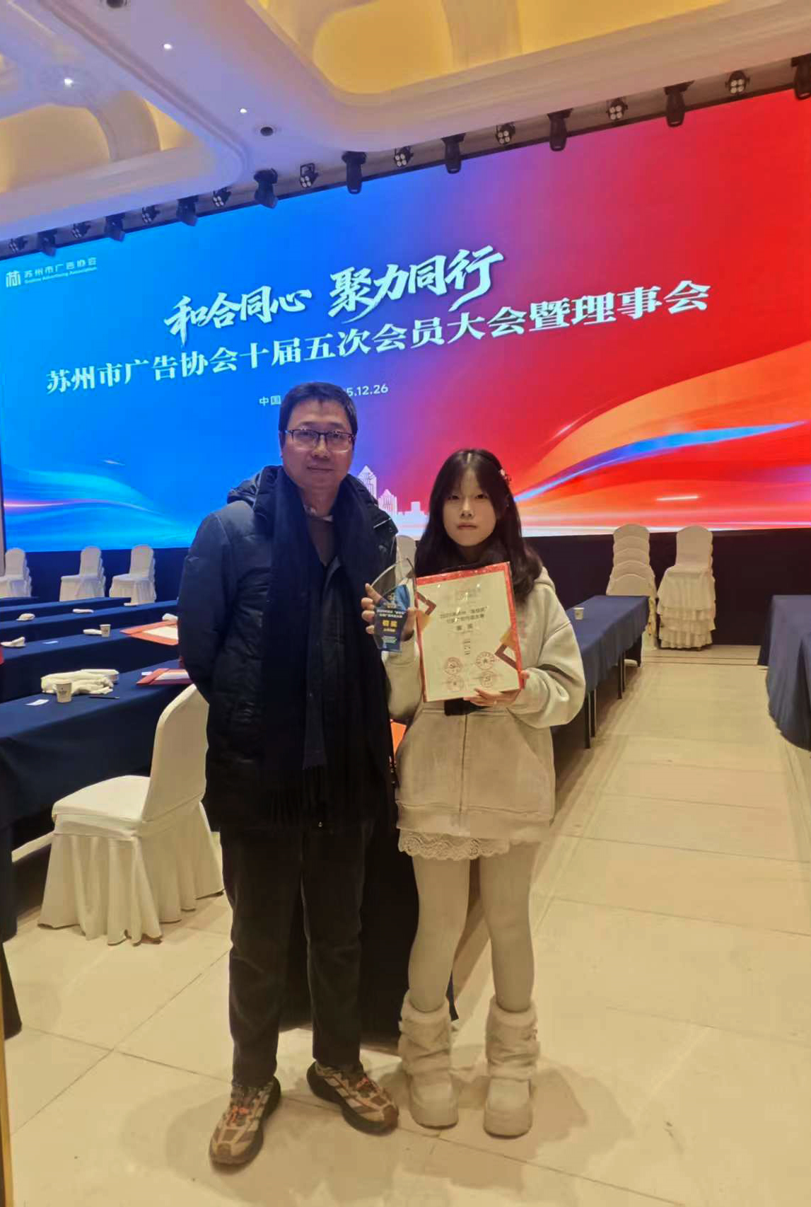 在此次大赛的创作过程中,我校专业教师许敏杰同志以高度的责任心投入指导工作,从创意构思到视觉呈现,从主题深化到细节打磨,他紧扣大赛“做文明可爱苏州人”的主题,引导学生深入挖掘苏州的江南文化内涵,将传统元素与现代公益理念巧妙融合,为作品的最终成型奠定了坚实基础。而在整个过程中,2212班的秦蕾同学始终秉持严谨的态度,认真对待每一次修改,反复推敲构图、色彩与文案。她利用课余时间主动查阅资料、观摩优秀案例,不断在创作中寻求突破,展现出极强的学习热情与执着精神。